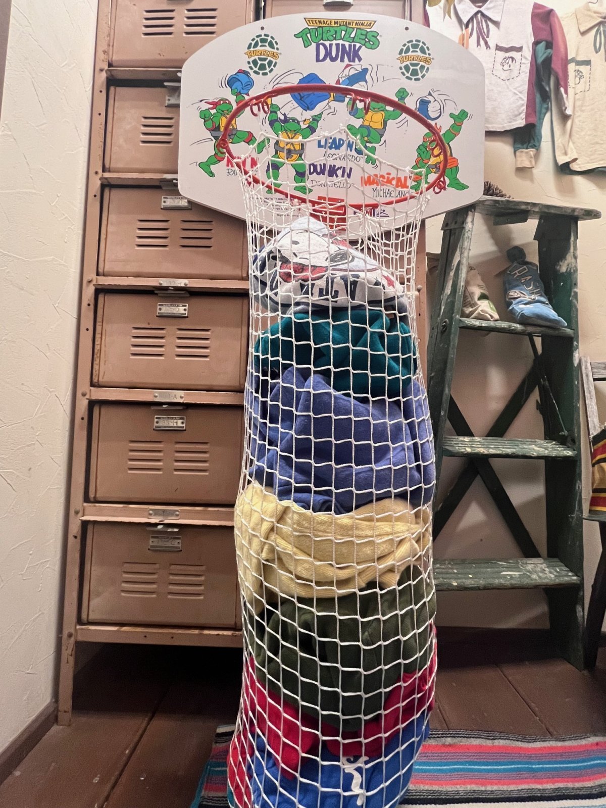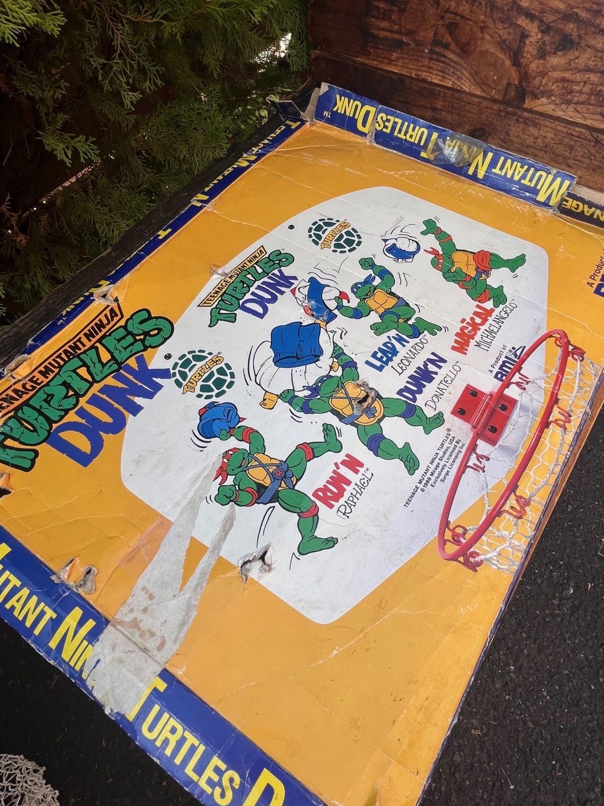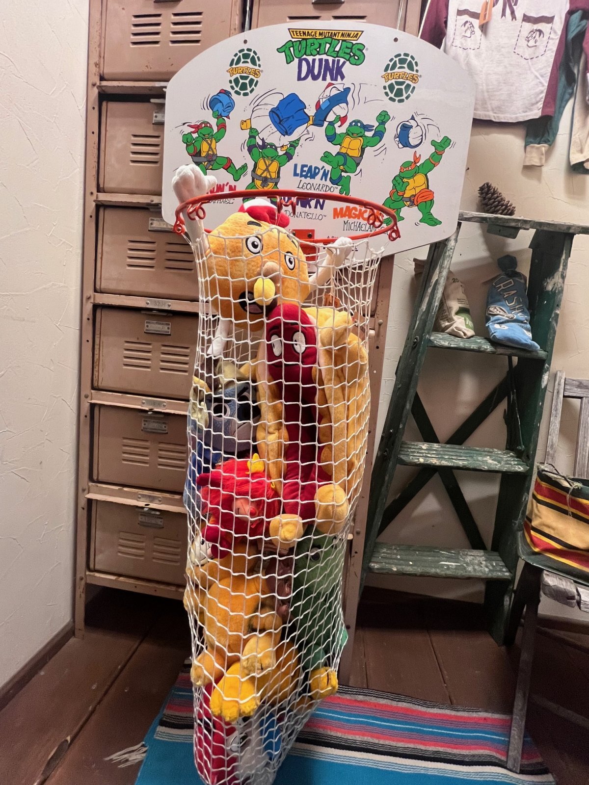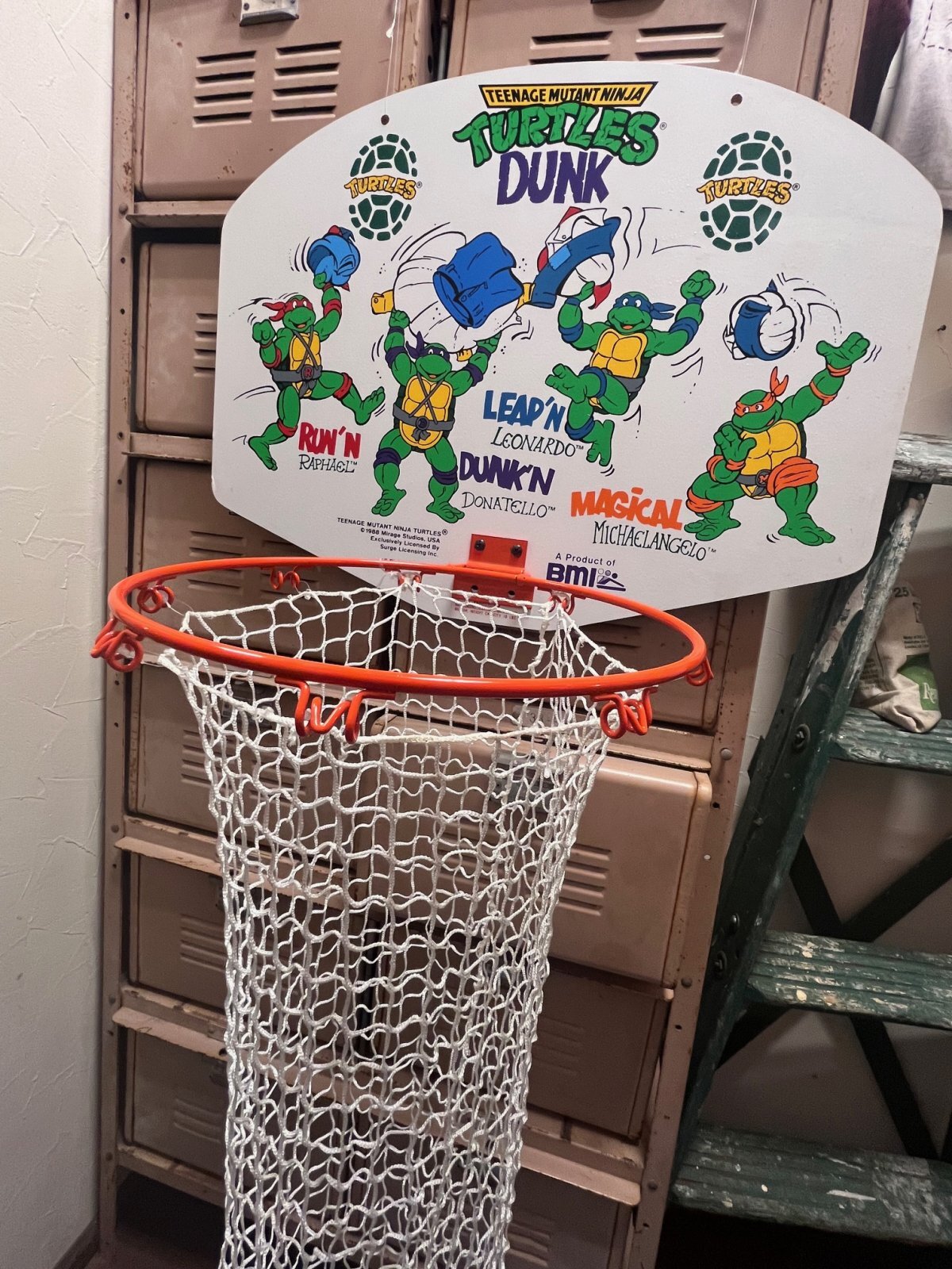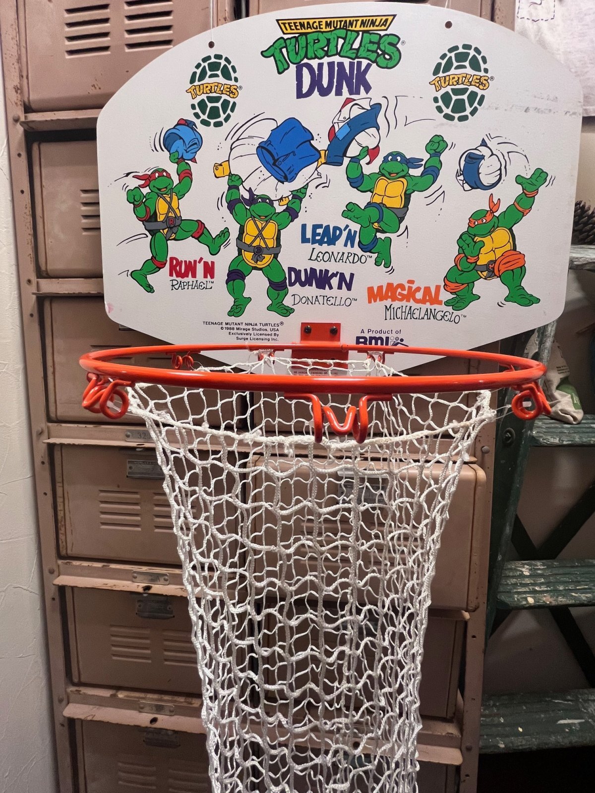 TEENAGE MUTANT NINJA TURTLES 1988年 BASKET HOOP入荷です。箱に傷みはございますが、中のバスケゴールは良い状態です。お部屋にバスケットコートを作るのはもちろん🏀ランドリーバッグとしてご利用いただけます。脱いだ服を!バシッとゴールを決めて!!遊んで整理整頓(ᵔᴥᵔ)出来ます。ぬいぐるみなどを入れて魅せるおもちゃ箱として、ご利用いただけます。80-90'Sが、お好きな方に、ドンストライクだと思います。なかなか出ないので、お探しだった方にオススメです。