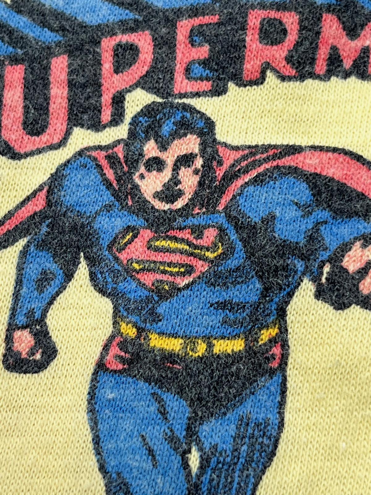 SUPERMAN 1970年代 KIDS Tシャツ入荷です。4歳表記 : 2-3歳くらいのお子様に良いサイズです。4歳サイズのトルソーに着用させた写真を添えます。どうぞご参照ください。アメリカン🇺🇸スーパーヒーローアイコン♪コレクタブルKIDS TEEです。お子様にはもちろん(ᵔᴥᵔ)お部屋のディスプレイにもオススメです。