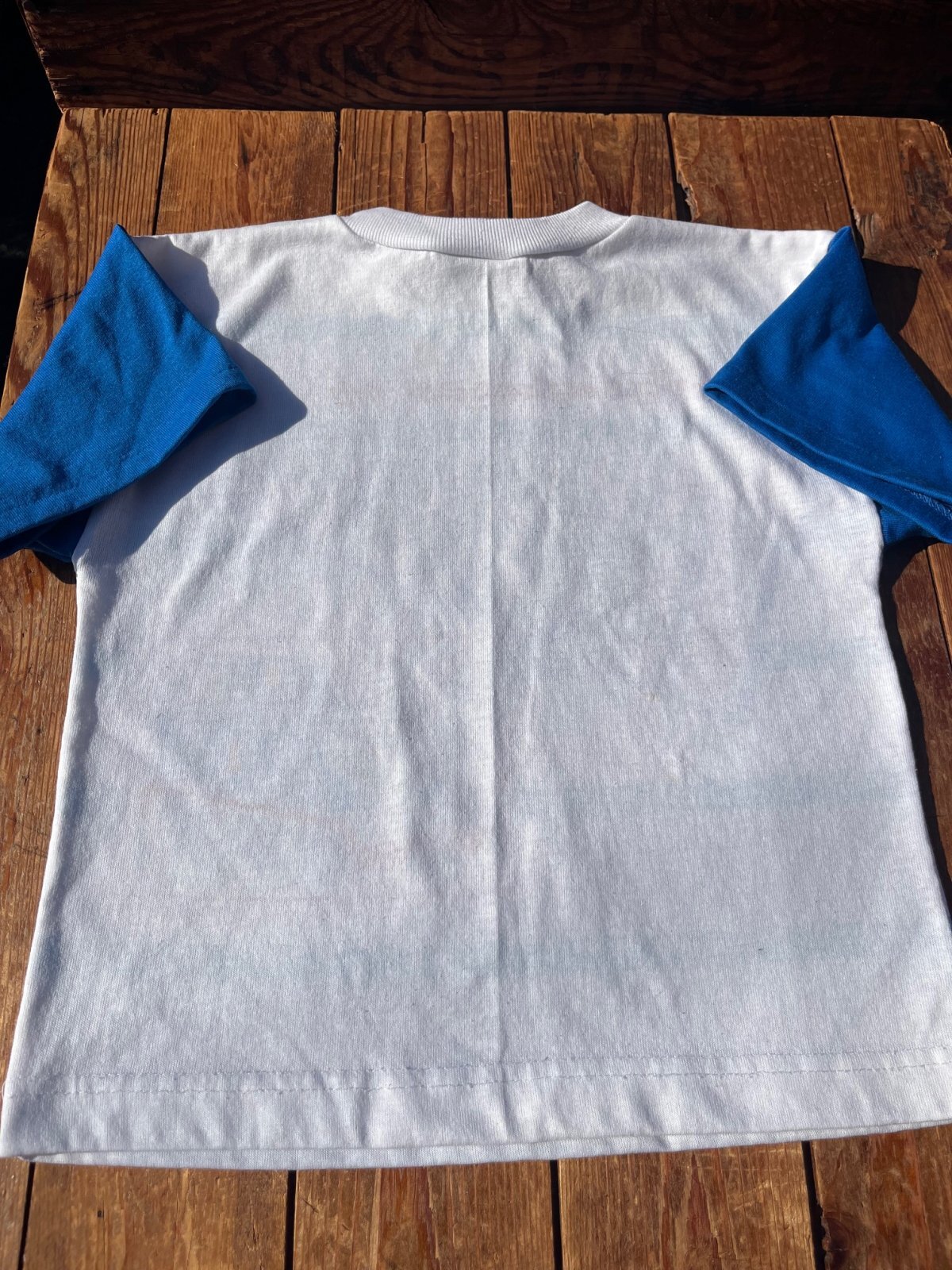 THOMAS “MADE IN USA " KIDS VINTAGE Tシャツ入荷です。青袖&ボーダー♪ ADVENTURE THOMASプリント♪♪ 6歳表記 : 5〜6歳くらいのお子様に良いサイズです。とても程度が良く(ᵔᴥᵔ)トーマスKIDSにオススメです。