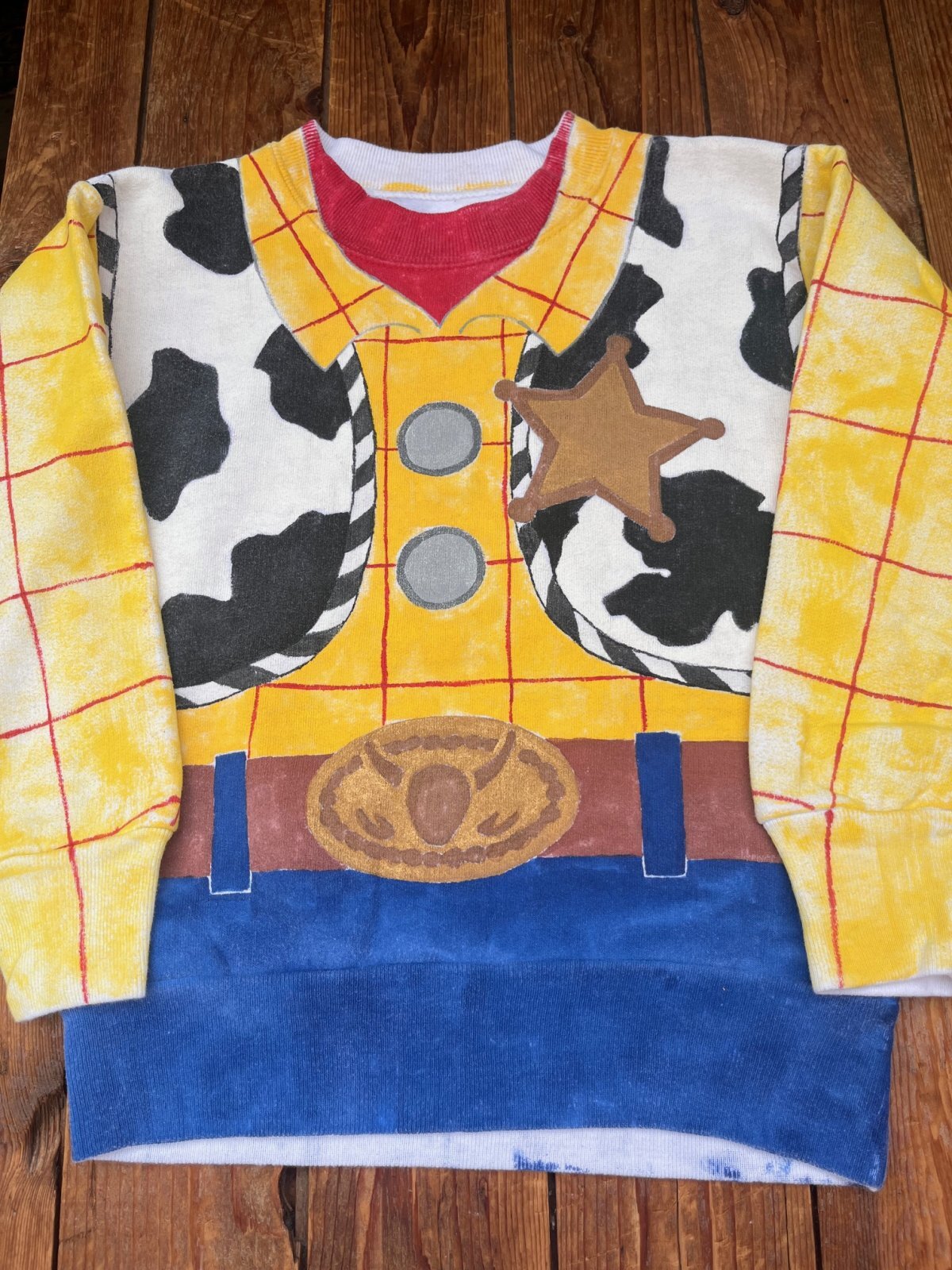 VERY🌵VERY!!! WOODY KIDSスウエット入荷です。ハンドペイントで描かれた🏜まさに一点物🏜古着の面白さ満タンの一着です。 後ろの引っ張り紐のイラストも!良いですよね♪ 数カ所シミはありますが、(洗濯済みです。ハンドペイントものですので、、気にならないと思います。) とても程度が良く、長くご愛用いただけると思います。XS表記: 4−5歳くらいのお子様に良いサイズです。今回、ジェシーも一緒に入荷しています。ご兄弟やご友人とのハロウィーンパーティー🏰インパークにオススメです。
