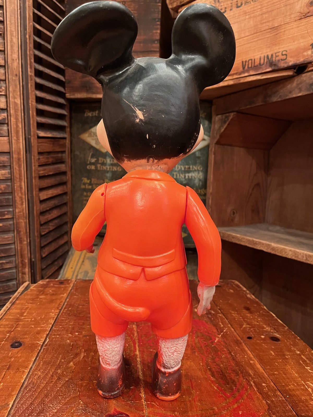 MICKEY MOUSE 1950年代 DISNEYフィギュア入荷です。ボディーがプラスチック(ᵔᴥᵔ)頭がソフビ仕様のLARGEミッキーです。左親指にダメージあり。ペイントスレあり。ラバーはまだ柔らかい状態です。POSABLEですので、お気に入りのポージングで遊べます。雰囲気抜群のレアな一体🏰コレクションにオススメです。