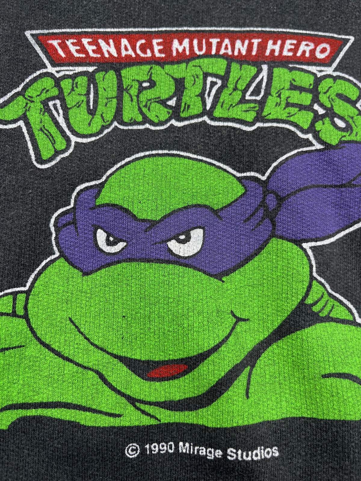 TURTLES "MADE IN DENMARK" KIDS スウエットパーカー入荷です。VINTAGEユーロTMNT♪デンマーク製です🇩🇰 ロバニエミで見つけました。袖にダメージあり。インク染みあり。(洗濯済みです)枯れた風合いですが、フロントにドナテロが大きくプリントされた🍆とってもかっこいい一枚です。6歳表記: 5-6歳くらいのお子様に良いサイズです。