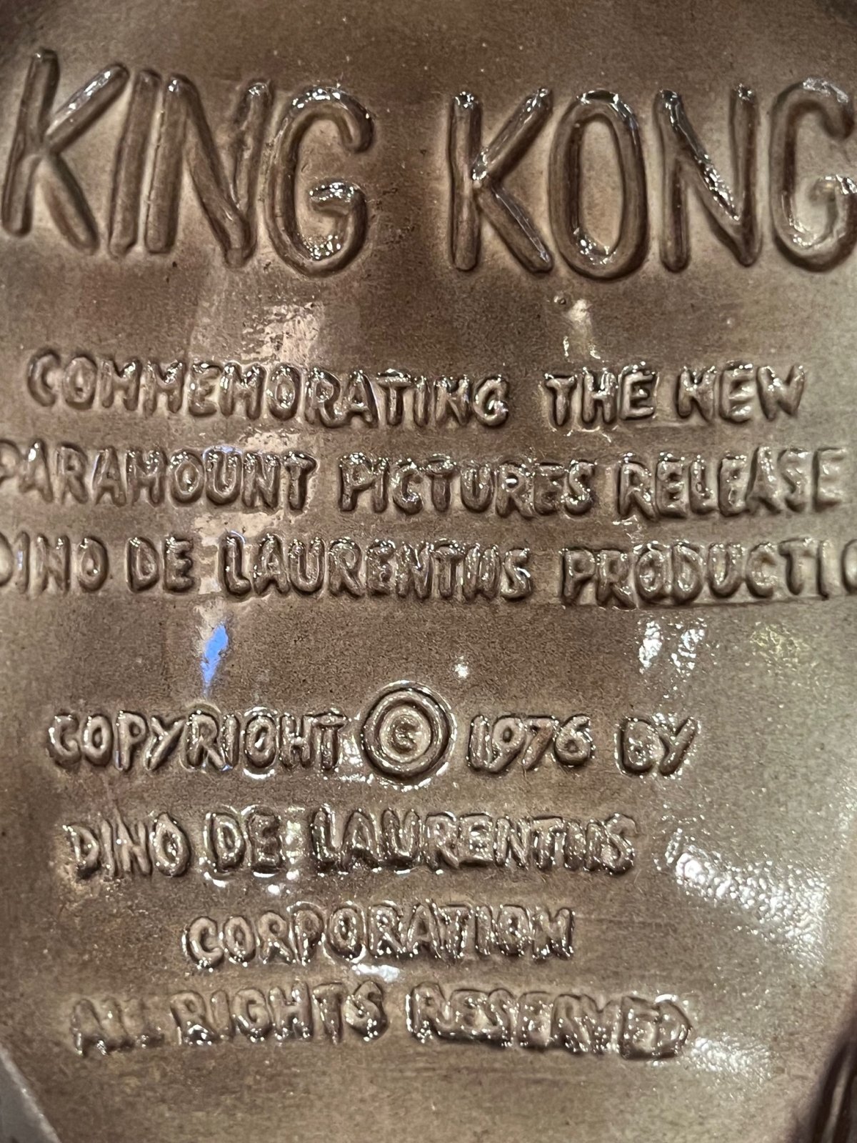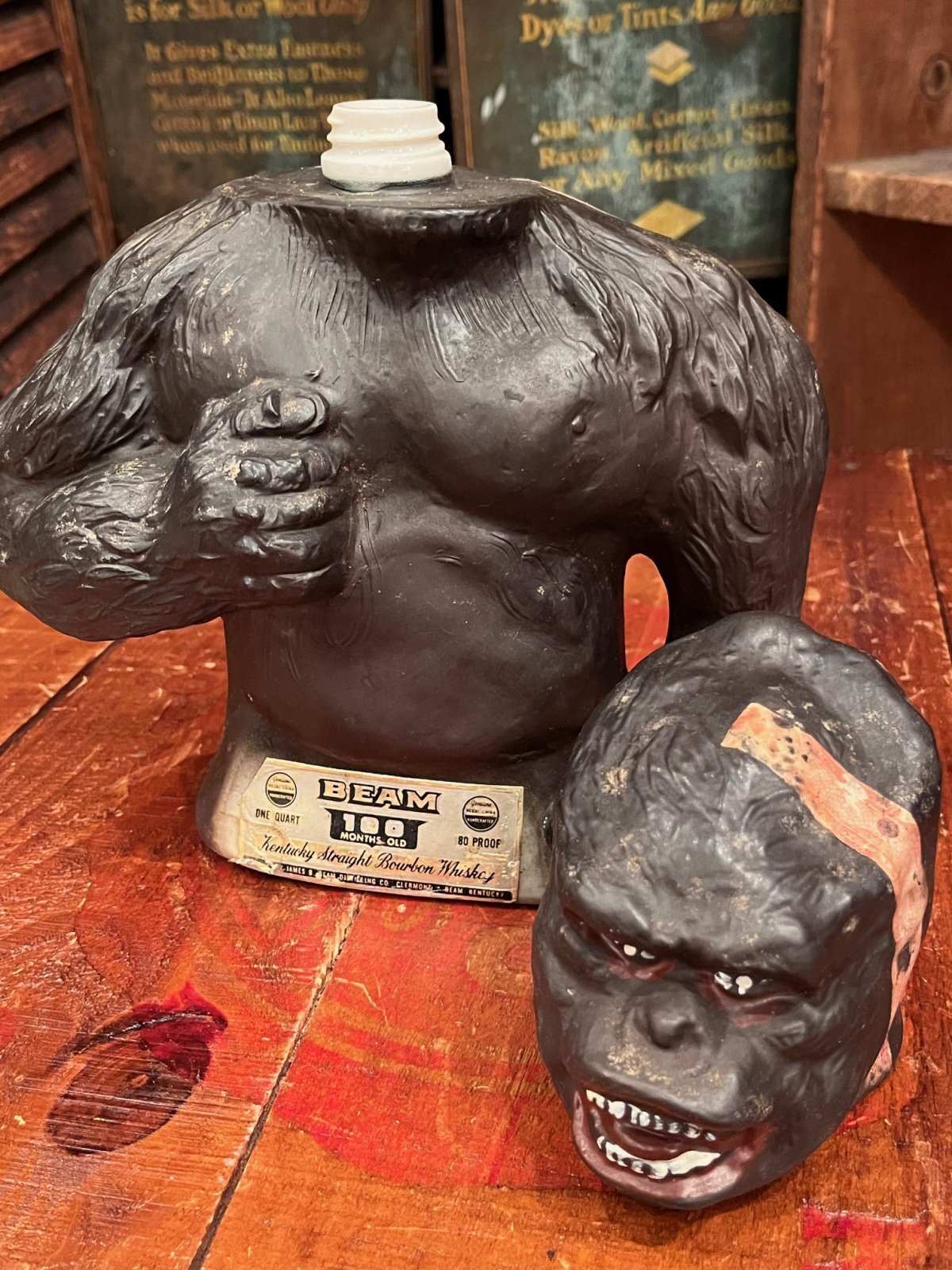 映画『KING KONG』1976年公開時に制作された Jim Beamボトルフィギイア入荷です。ライセンスが複雑だった時代を乗り越えて🗽DINO DE LAURENTNS©️コピーライト物です🗽迫力満点の!コングの造形が、激悪で!!最高ですよね🎬 古い映画GOODSやモンスター、DECANTER、、、をコレクションされてる方にオススメです。