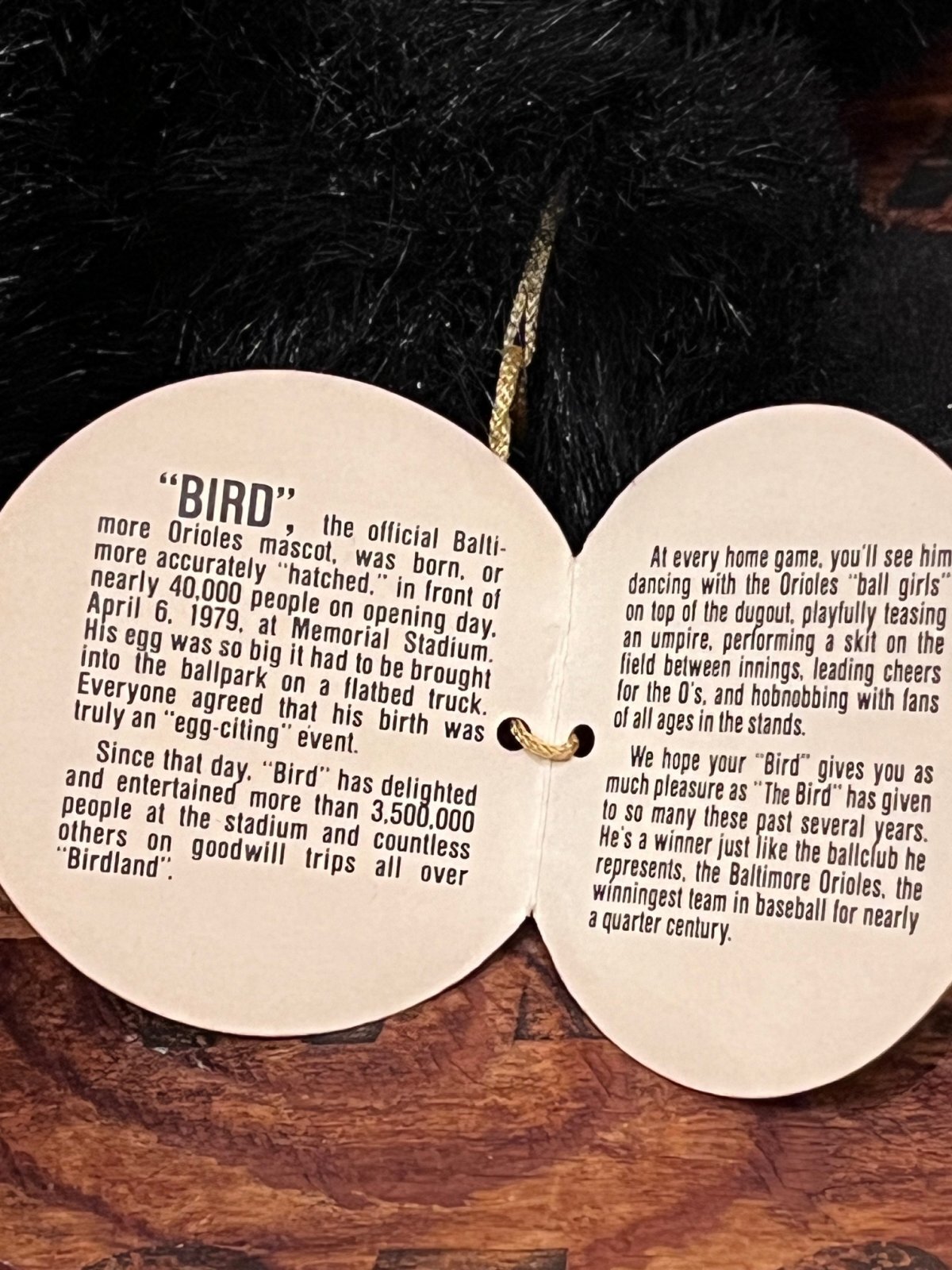 BALTIMORE ORIOLES "THE ORIOLES BIRD" VINTAGE PLUSH DOLL