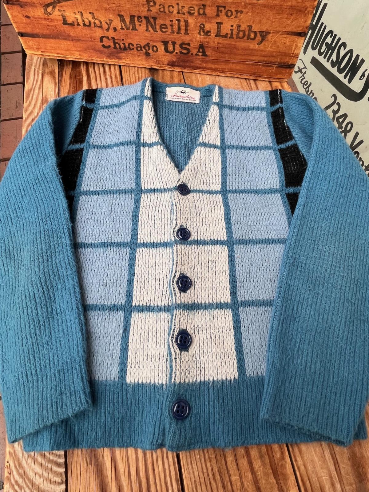 HAVENSHIRE KIDS 1960'S カーディガン入荷です。ウィンドウペン🏡好配色ニットで、とてもかっこいいです。4ー5歳くらいのお子様に良いサイズです。4歳サイズのトルソーに着用させた写真を添えます。どうぞご参照ください。