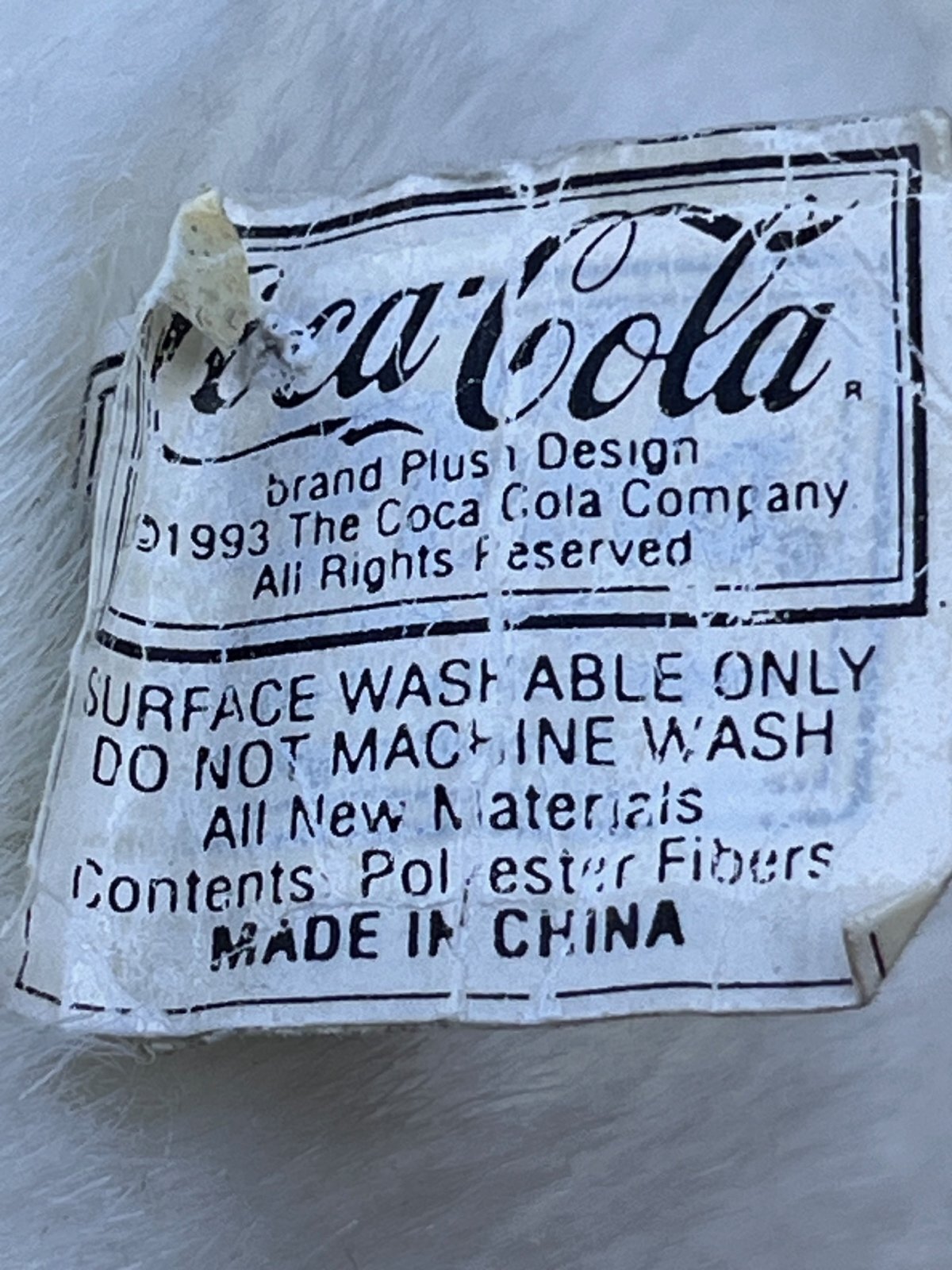 COKE BEAR 1993年 PLUSH DOLL入荷です。LARGEドール(ᵔᴥᵔ)OLD COKEボタン付き♪コロンコロンの♬ とってもかわいいテディベアーです。プリントタグの上から、アイルランドのCOKE社ステッカーが貼り付けられているユーロラインの一体です。フィンランドで見つけました。程度良好(ᵔᴥᵔ)コレクションにおすすめです。190ml 空き瓶と一緒に並べると素敵ですので、SETでの販売です。