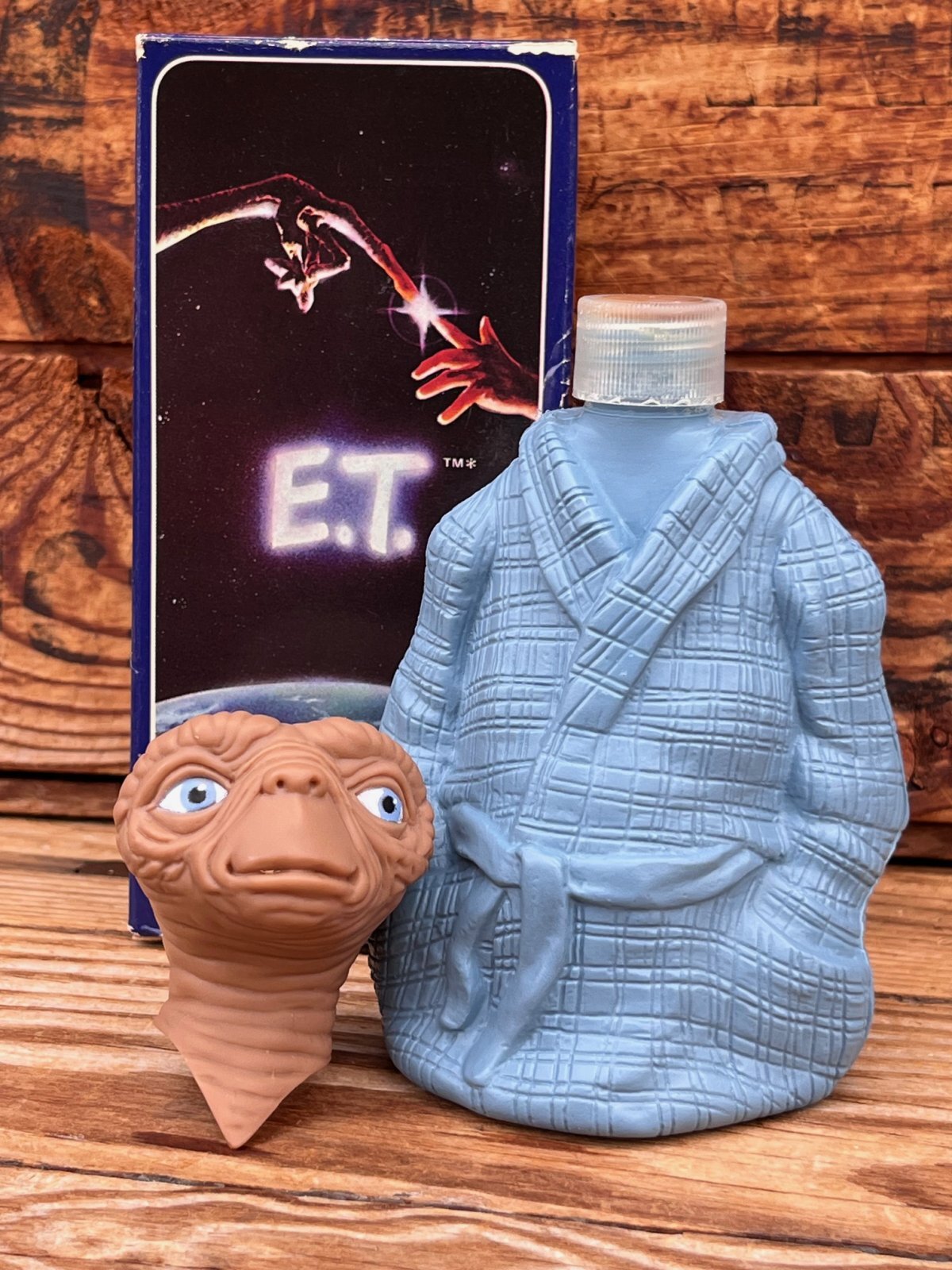 E.T. 1980年代AVON社製 バブルバスボトル フィギイア入荷です。箱付きのD.STOCK。中の石鹸は処分して、一度洗っています。箱に石鹸シミあり。あのガウン姿のE.T.!! 造形が良く♪コレクションにおすすめです。