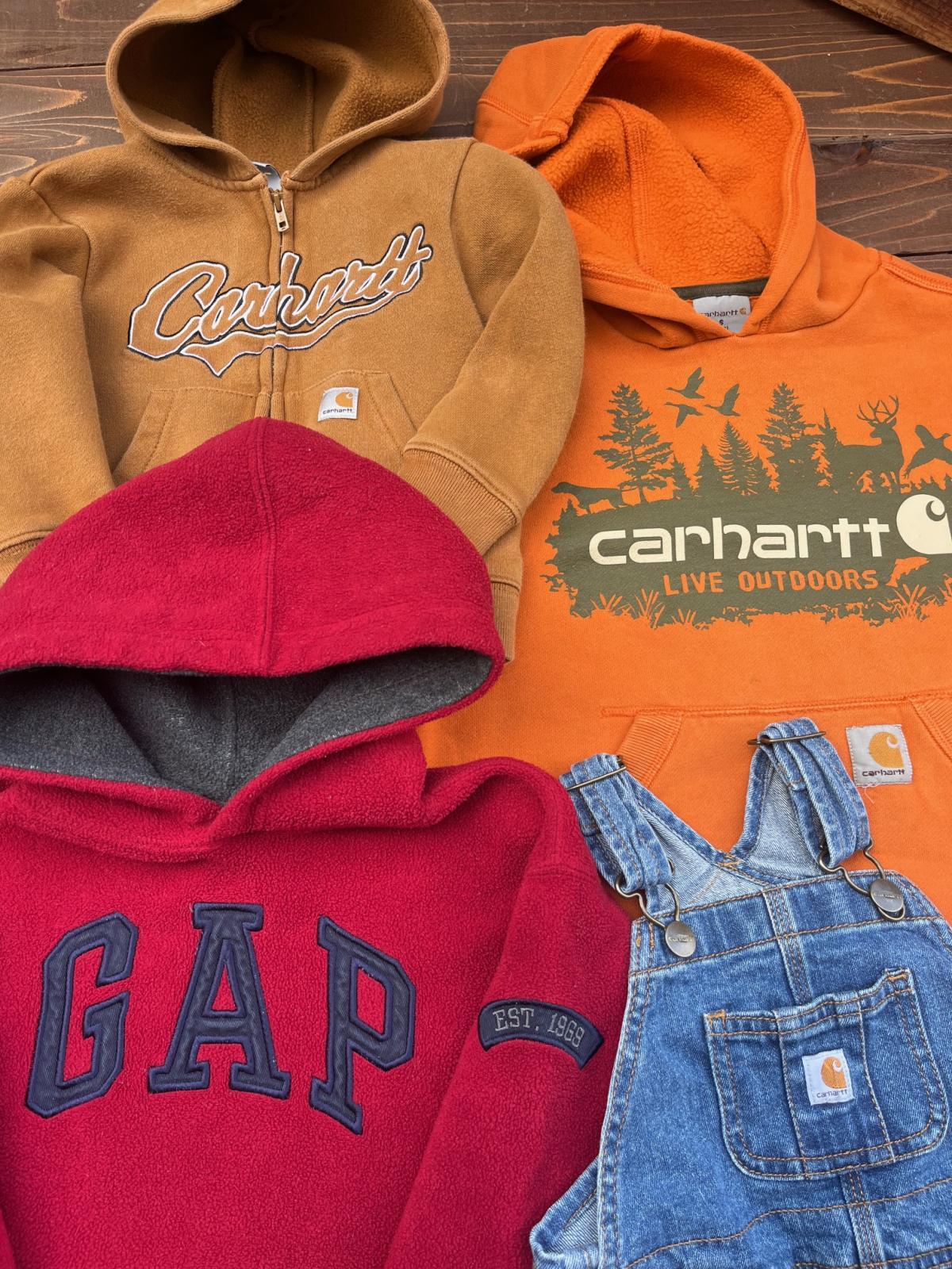 CARHARTT KIDS USED SWEAT PARKA入荷です。ブラウンベースに、カーハートレタードパッチデザイン🌲フルジップですので、春先の調節着として便利です♬ 2歳表記:2歳くらいのお子様に良いサイズです。