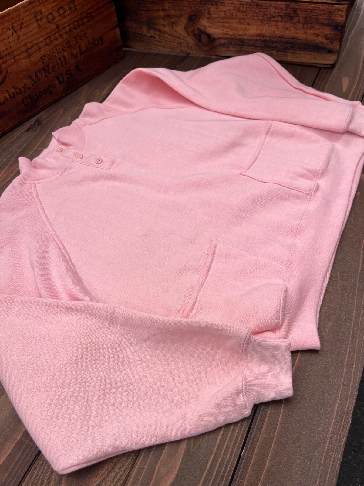 セパレートポケット🐷ピンクヘンリー 1980~90年代 スウエット入荷です。当時のタグ付きのD.STOCK品。フカフカの状態です。フロントに保管時のシミあり。(未洗いです)MEDIUM表記:小柄な大人の方や高学年くらいのお子様に良いサイズです。LADY'S MEDIUMサイズのトルソーに着用させた写真を添えます。どうぞご参照ください。