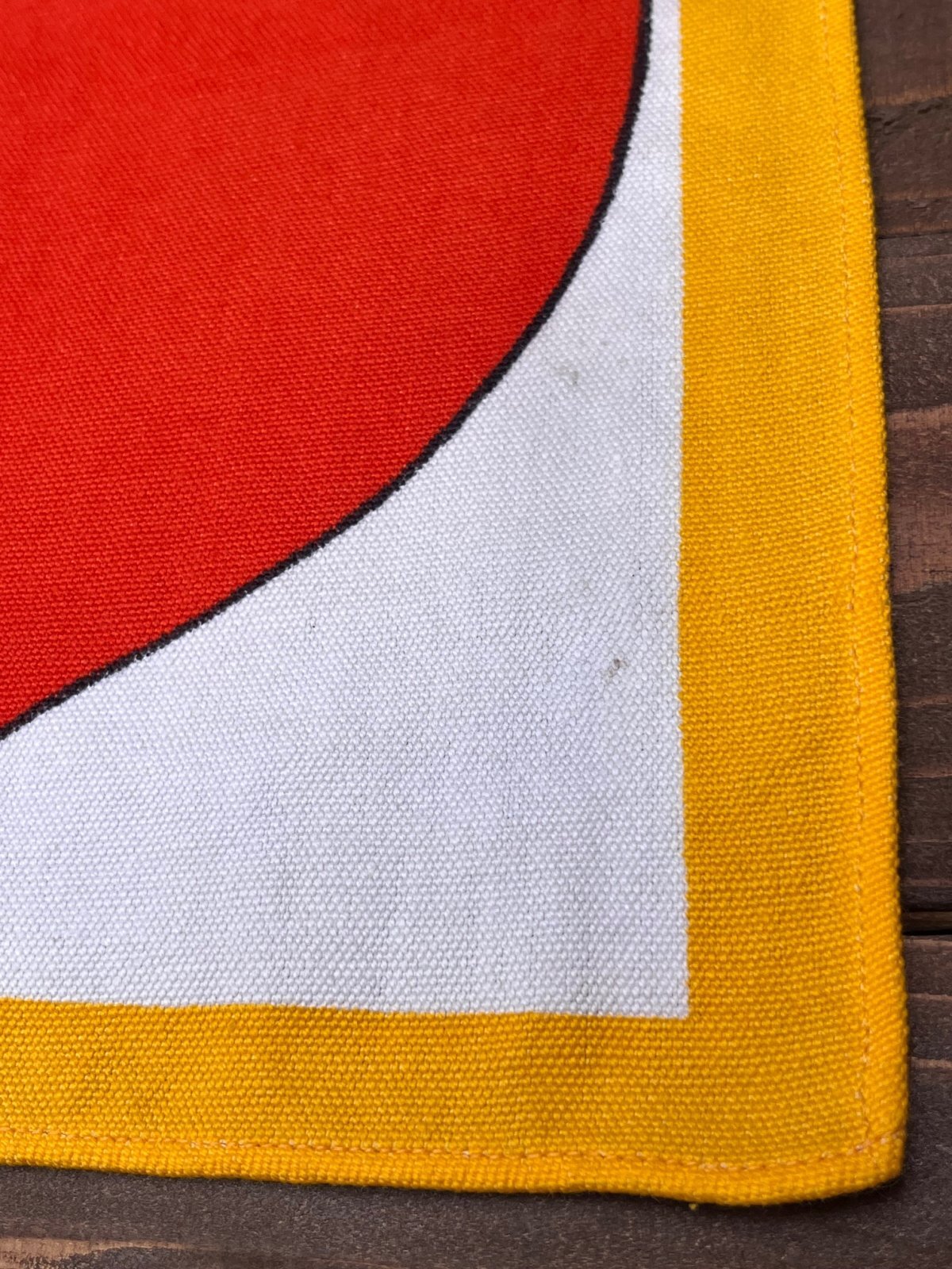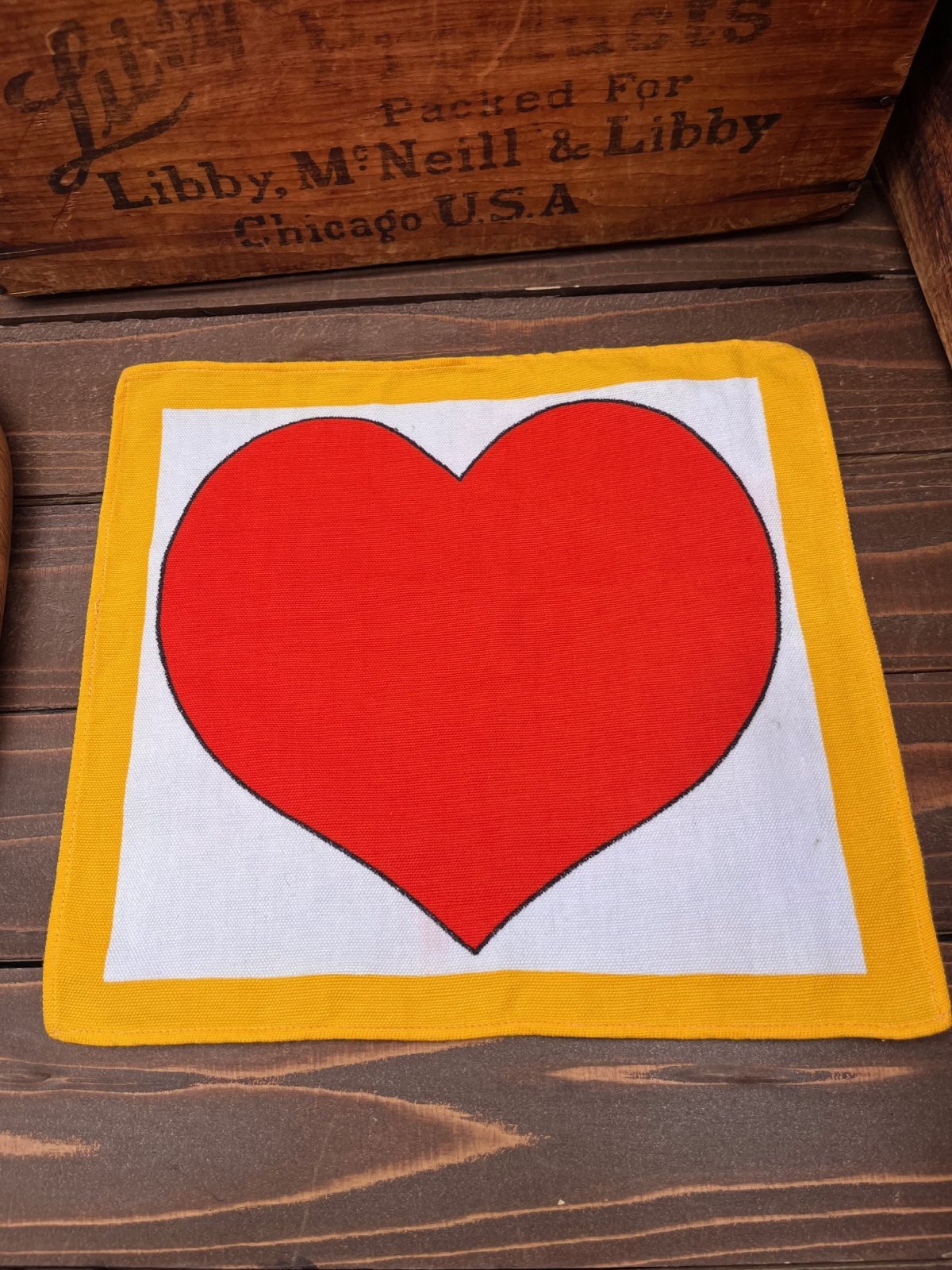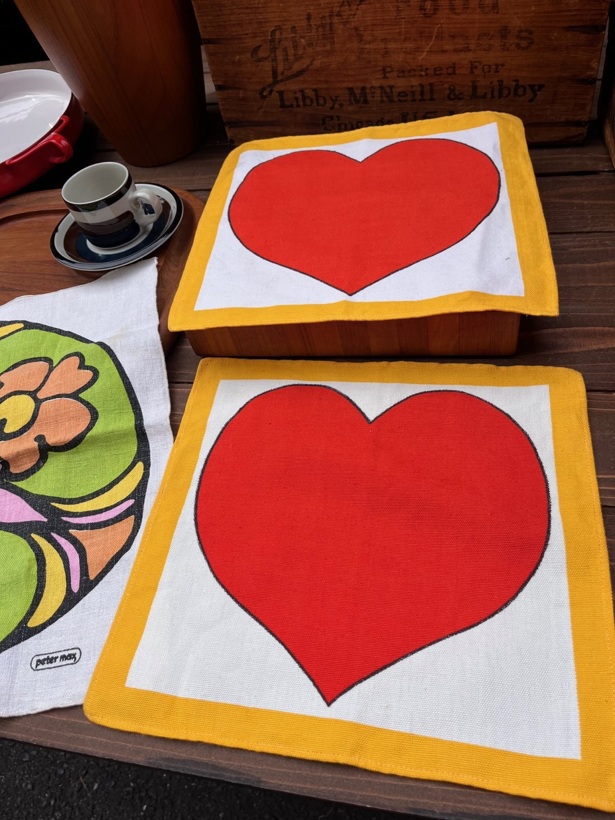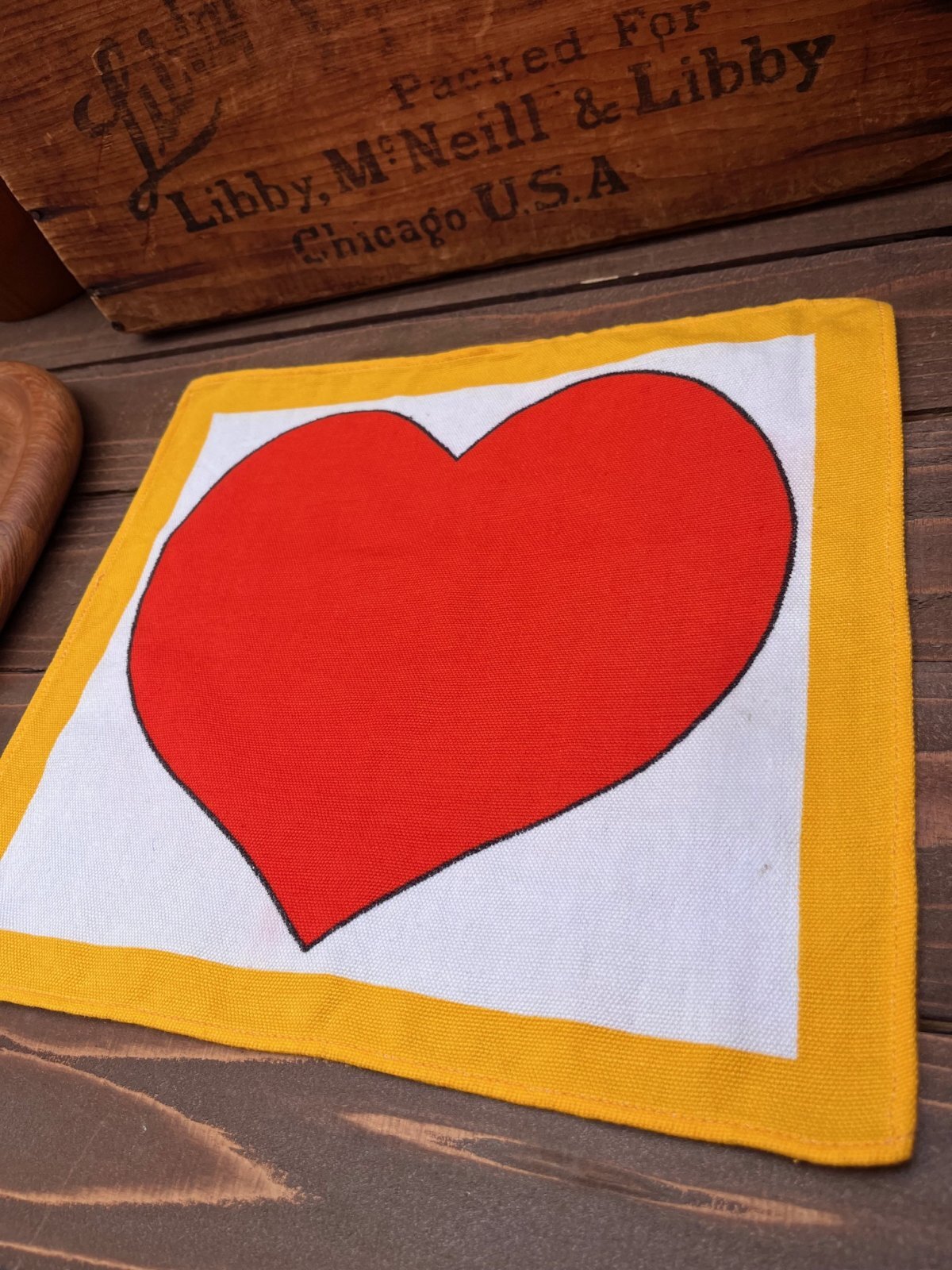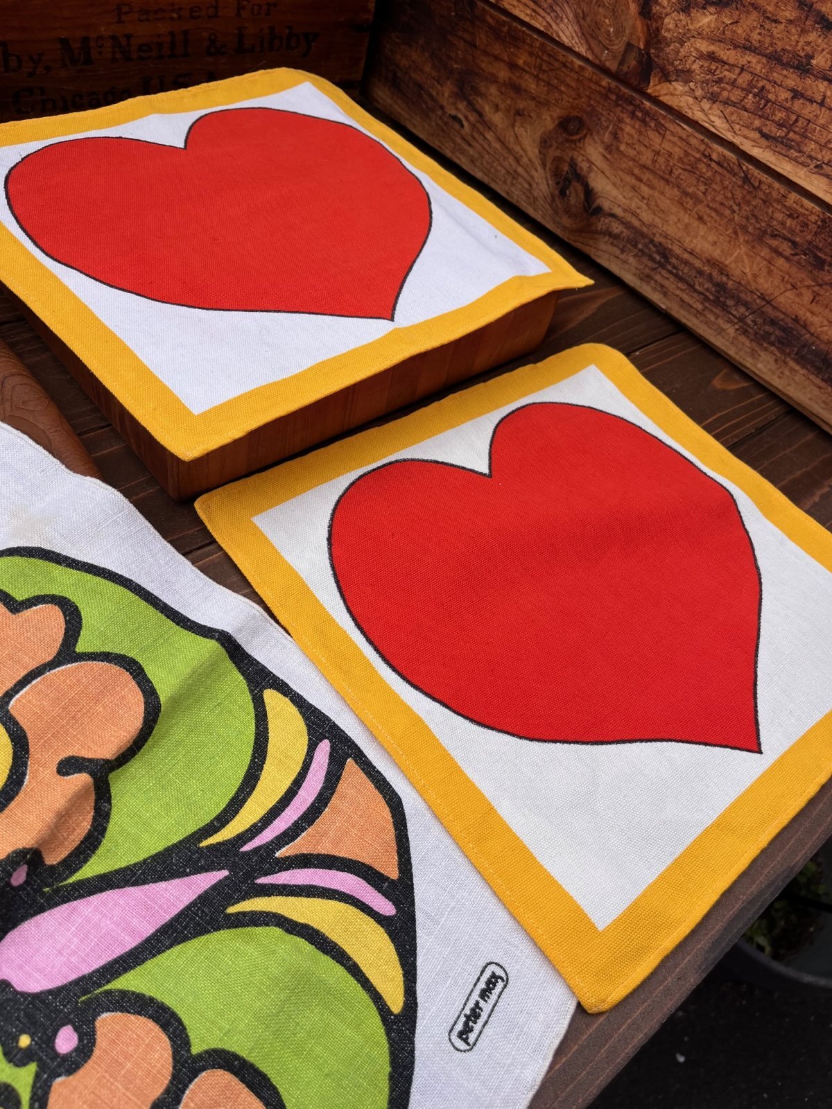 SCANDINAVIANデザイン 1970年代頃のランチョンマット入荷です。ざらりとしたリネン素材にPOPデザインの♪とっても可愛い一枚です。OULUのアンティークショーで見つけました。ランチョンマットとして使うのはもちろん、額装して部屋のオブジェにしてもよいと思います♪このまま子供部屋などに、貼り付けても♪ガーランドのように吊り下げても素敵です。御覧の通りの、、ハートフルデザイン🧡POPアートがお好きな方に、おすすめです。
