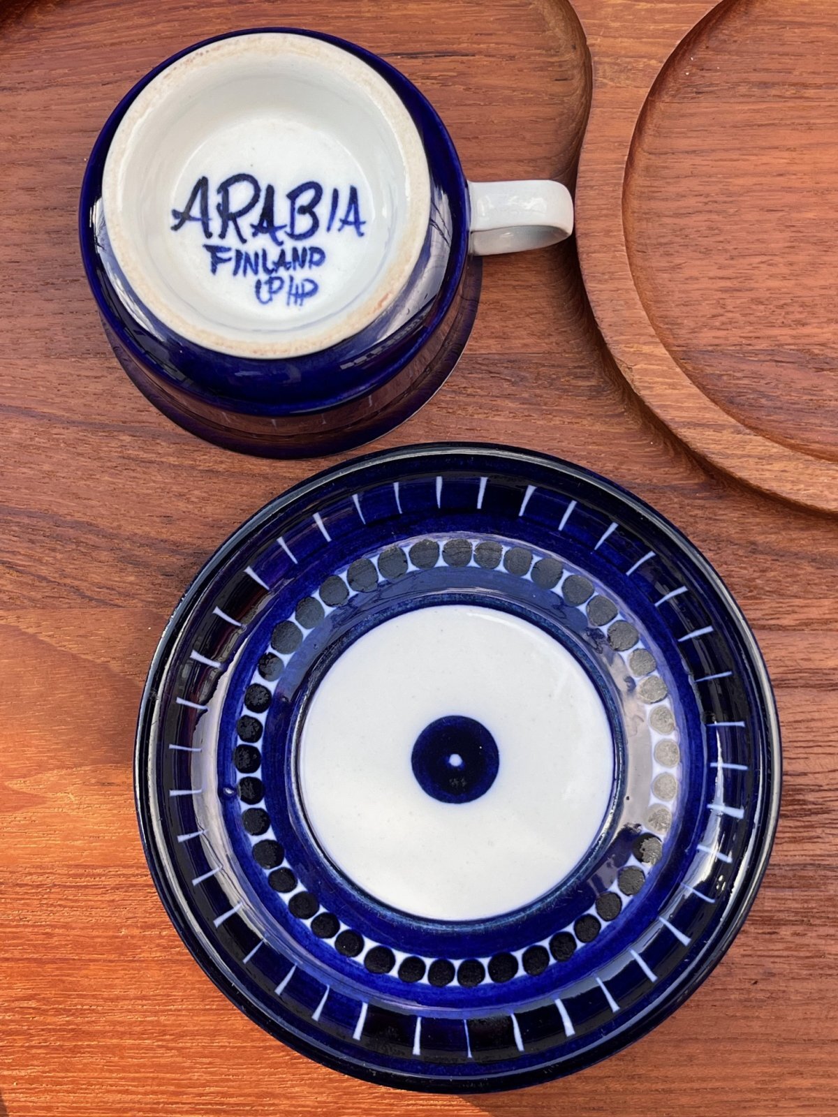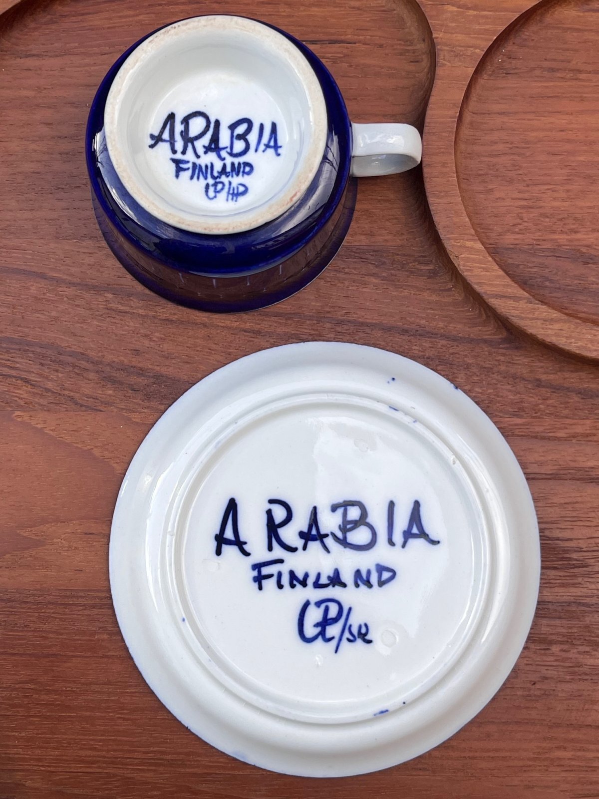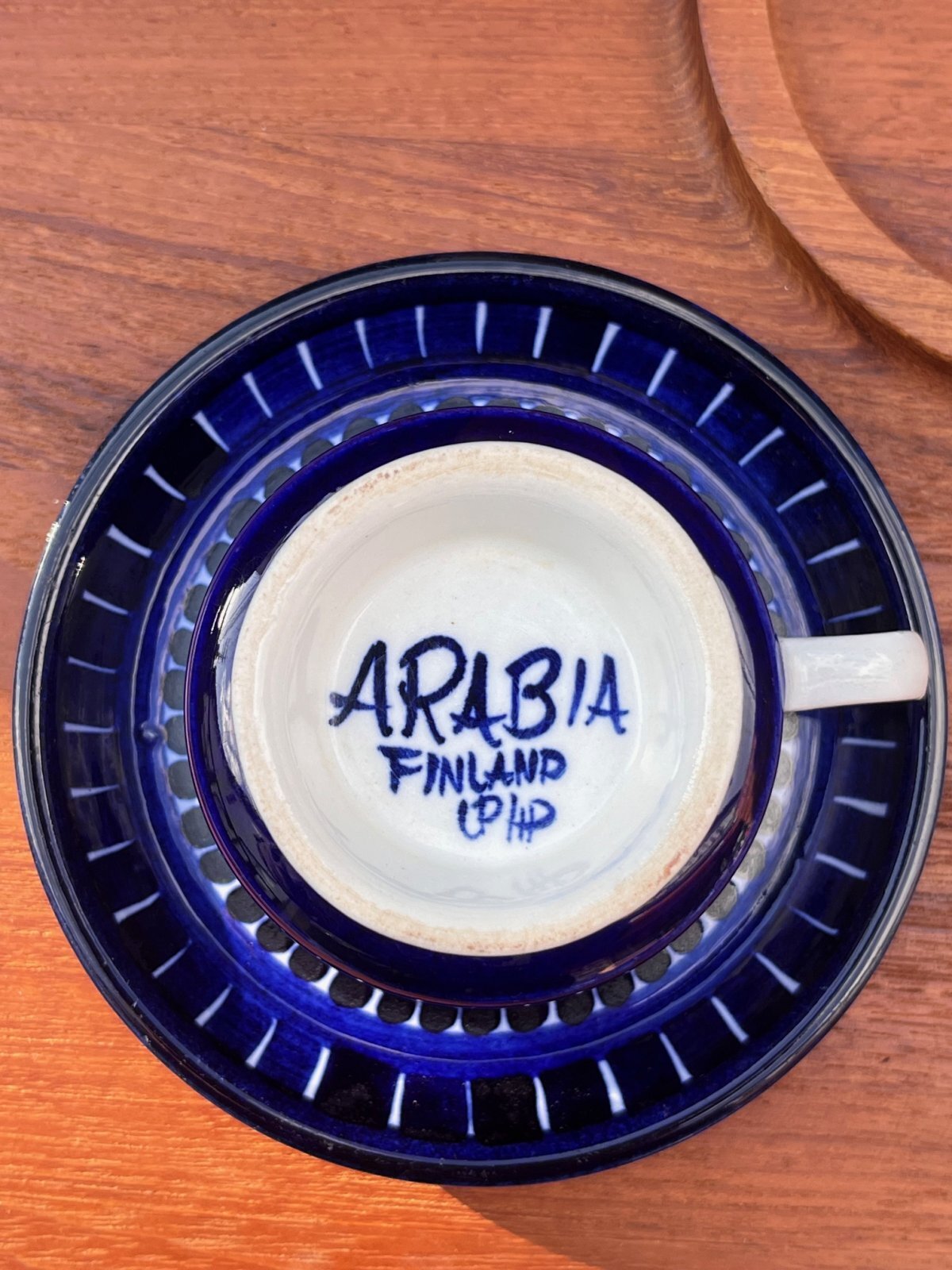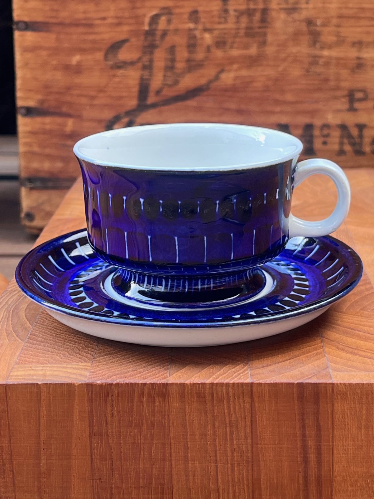ARABIA 1960年代 "VALENCIA" CUP & SAUCER SET入荷です。水と太陽と肥沃な大地!地中海のバレンシアNAVY!!大輪の花咲く♫美しいC&Sです。ハンドペイントで、ブランドネーム&デザイナーズネームが描かれた古いモデルです。コレクションにオススメです。