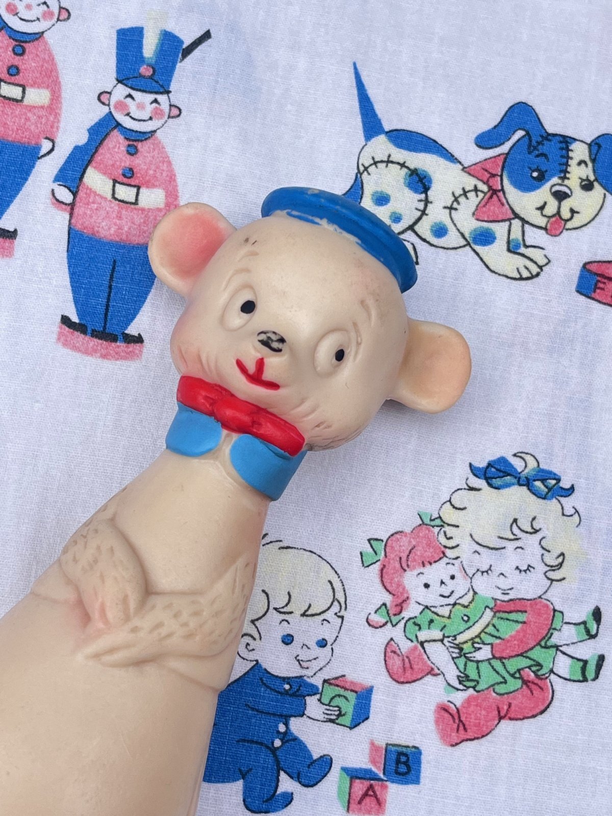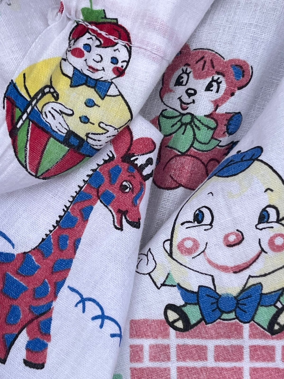 オモチャ王国🏰TOY LAND VINTAGE ファブリック入荷です。ハンプティダンプティー🍳JACK IN THE BOX、クマちゃん(ᵔᴥᵔ)ROLLY POLLY♪♪1960~70年代あたりのPLAYSKOOLやFISHER-PRICEのオモチャ達が、総柄でプリントされた🎪とってもカワイイ一枚です。オモチャ部屋の背景やカーテン、モノ隠しなどに大活躍すると思います。リメイク素材などにも、オススメです。