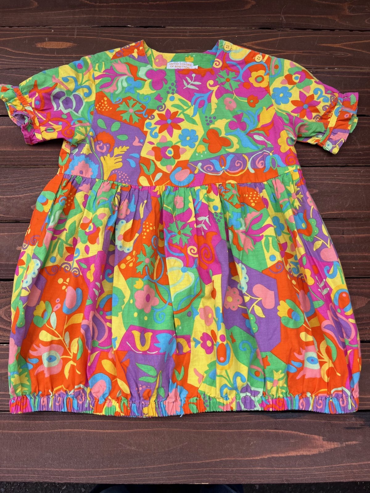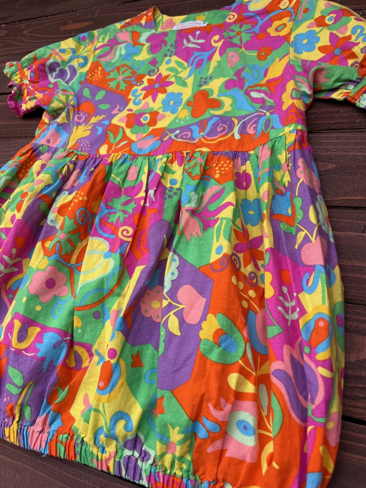 POPサイケ♬♬ BENETTON "MADE IN ITALY" KIDS チュニック入荷です。裾ゴムで丸みを出した🕊ふんわり🎈バルーンシルエット🕊サイケデリックとフラワームーブメントの融合させた🎸色あざやかな🎸とってもカワイイ一着です。8歳表記:8歳くらいのお子様に良いサイズです。