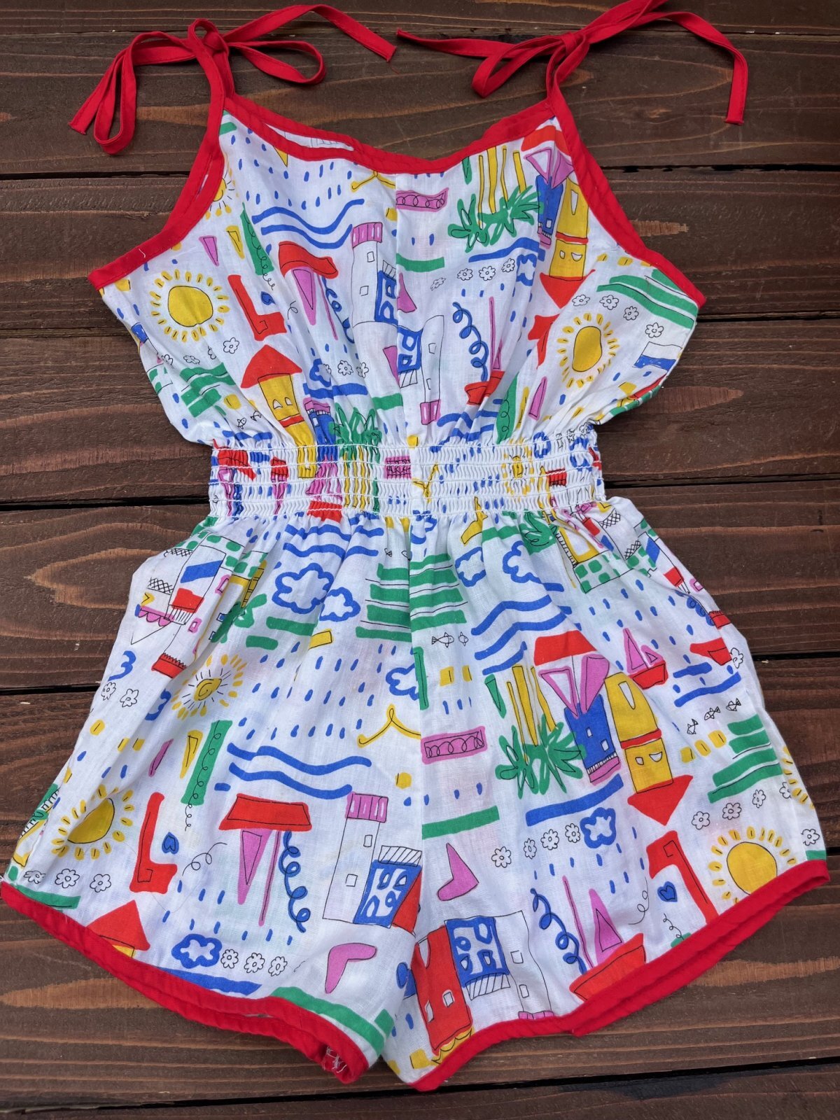 海へ行くつもりじゃなかった♬ CARROTS "MADE IN USA" KIDS VINTAGEオールインワン入荷です。太陽サンサンデザイン⛵️ご覧の通りの可愛さです。12歳表記: 5〜8歳くらいのお子様に良いサイズです。とても程度が良く、オススメの一着です。4歳サイズのトルソーに着用させた写真を添えます。どうぞご参照ください。