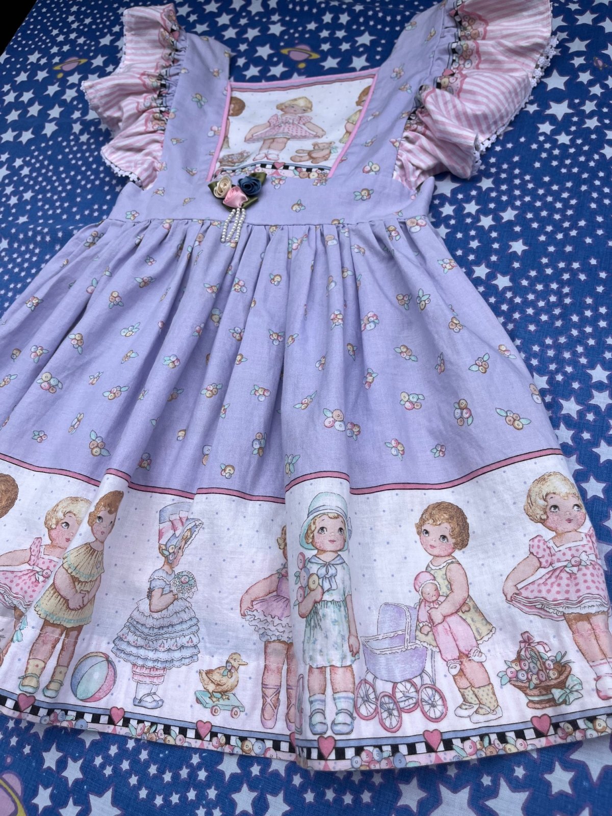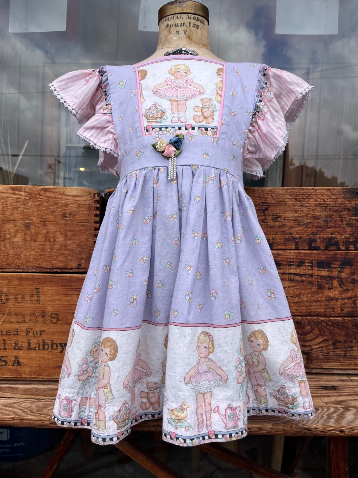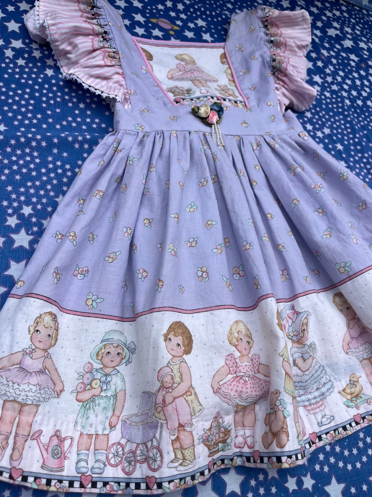 VERY!!! パタリロ🇫🇷デザイン!最高!! KIDS バックリボンドレス入荷です。ぱみゅぱみゅ🎀ボンボン🍬星屑のディスタンス🦄メルヘソ度数SUPER MAX👗イラストがパタリロ & LOLミックスの♬とってもカワイイ一着です。(パタリロが際立つように、PETER MAXと合わせました✨)4〜6歳くらいのお子様に良いサイズです。4歳サイズのトルソーに着用させた写真を添えます。どうぞご参照ください。