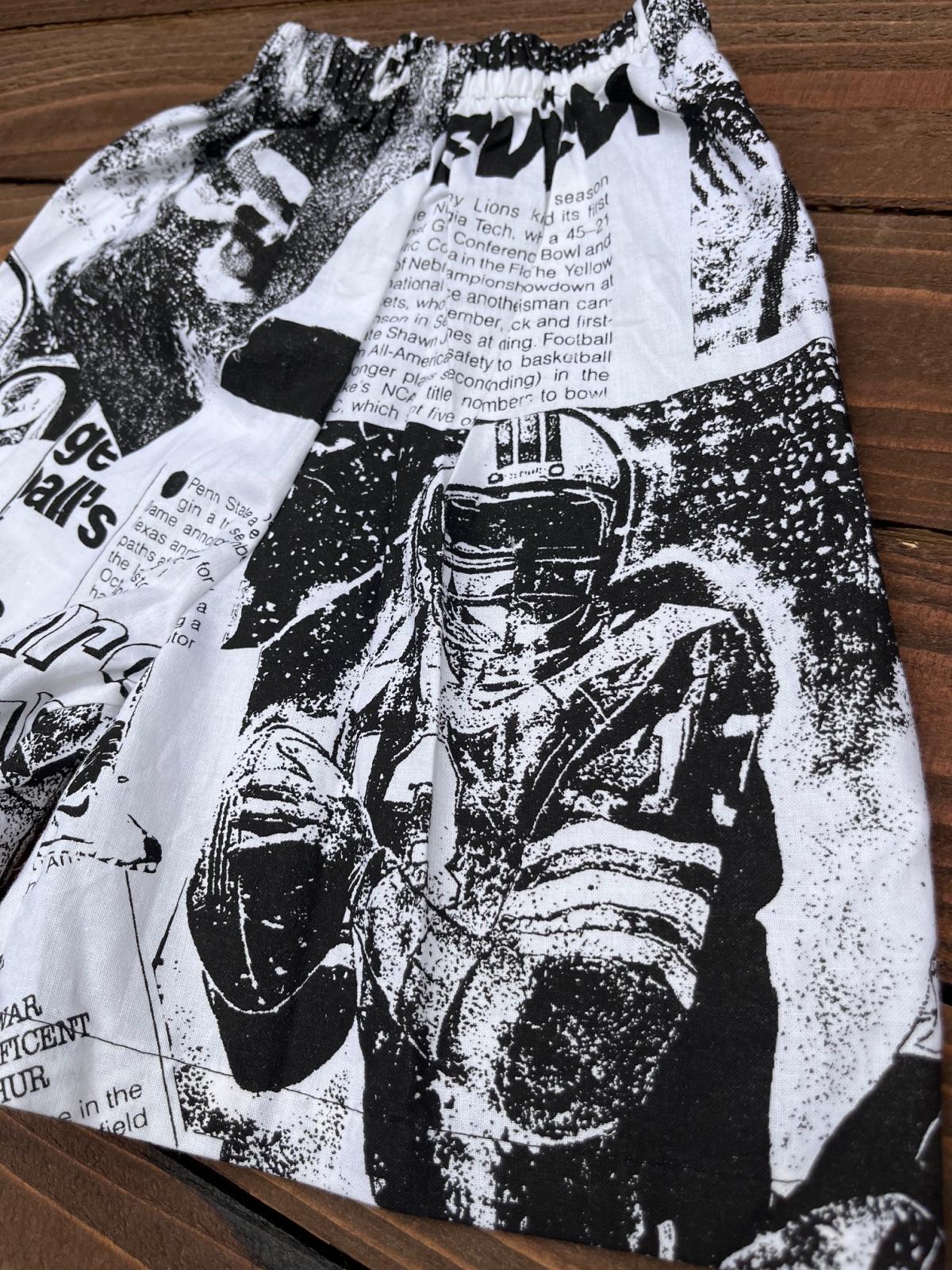 AMERICAN FOOTBALL "MADE IN USA" KIDS ショーツ入荷です。アメフト🏟オールオーバープリント🏈モノクロカラーのGOODデザインの一本です。未洗いのD.STOCKで、とても良い状態です。MEDIUM表記:4〜5歳くらいのお子様に良いサイズです。カワイイですよ♪