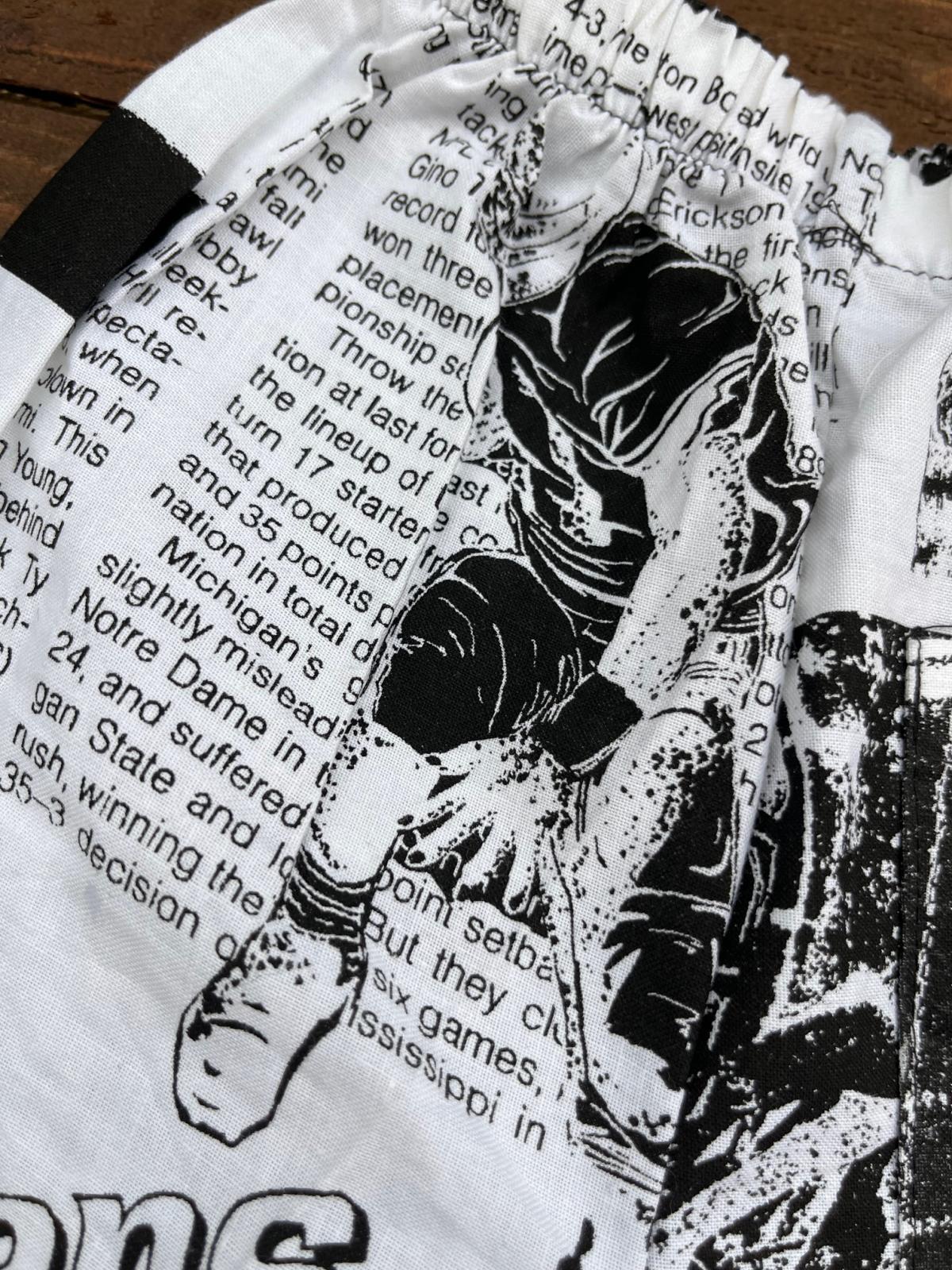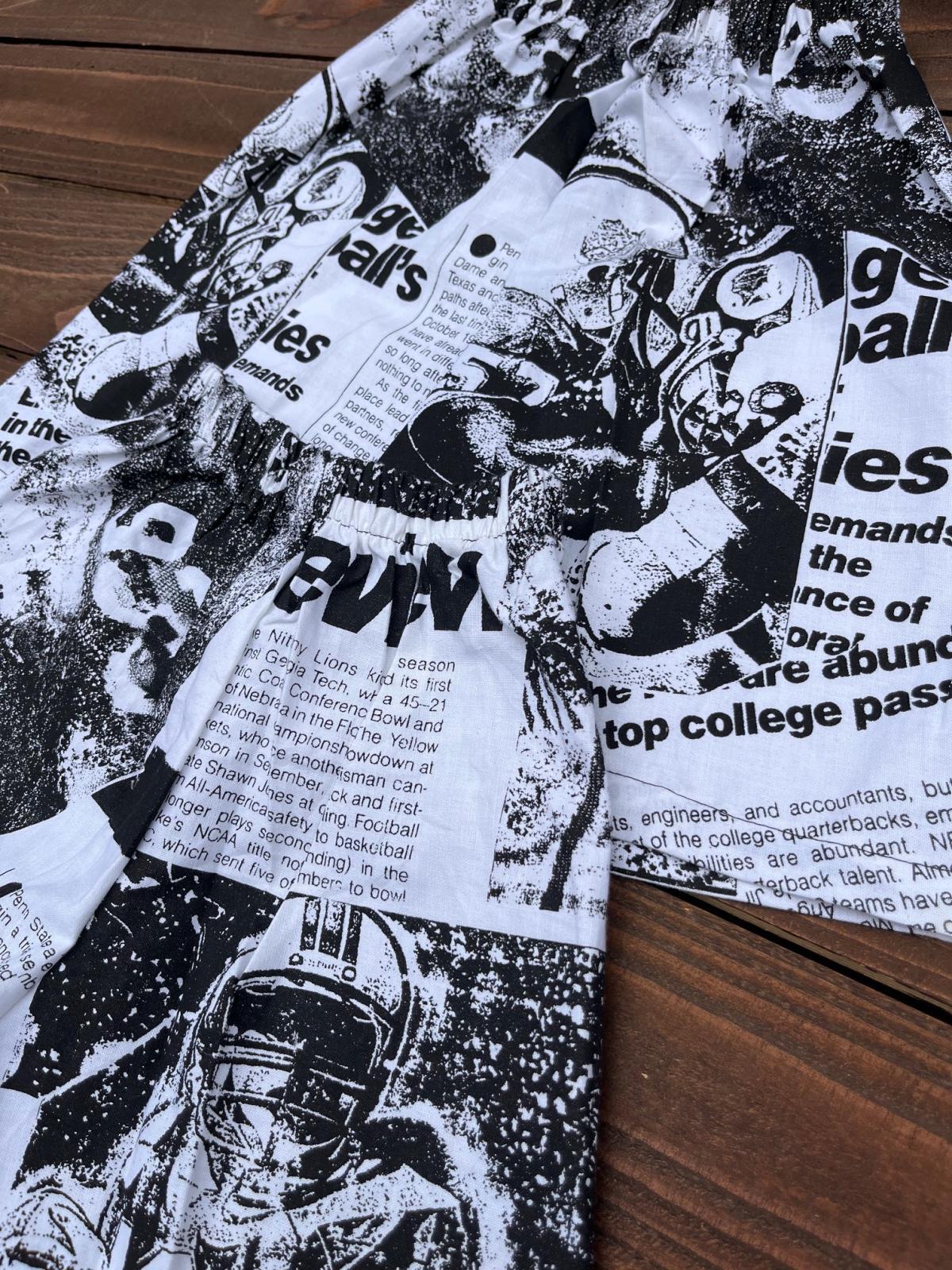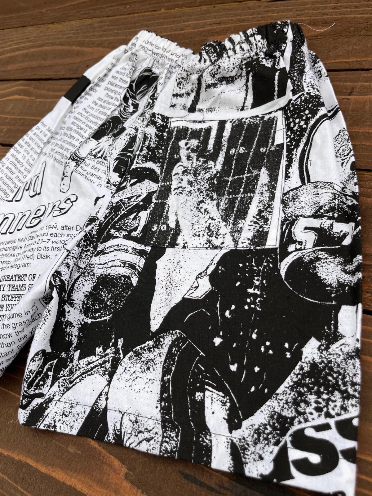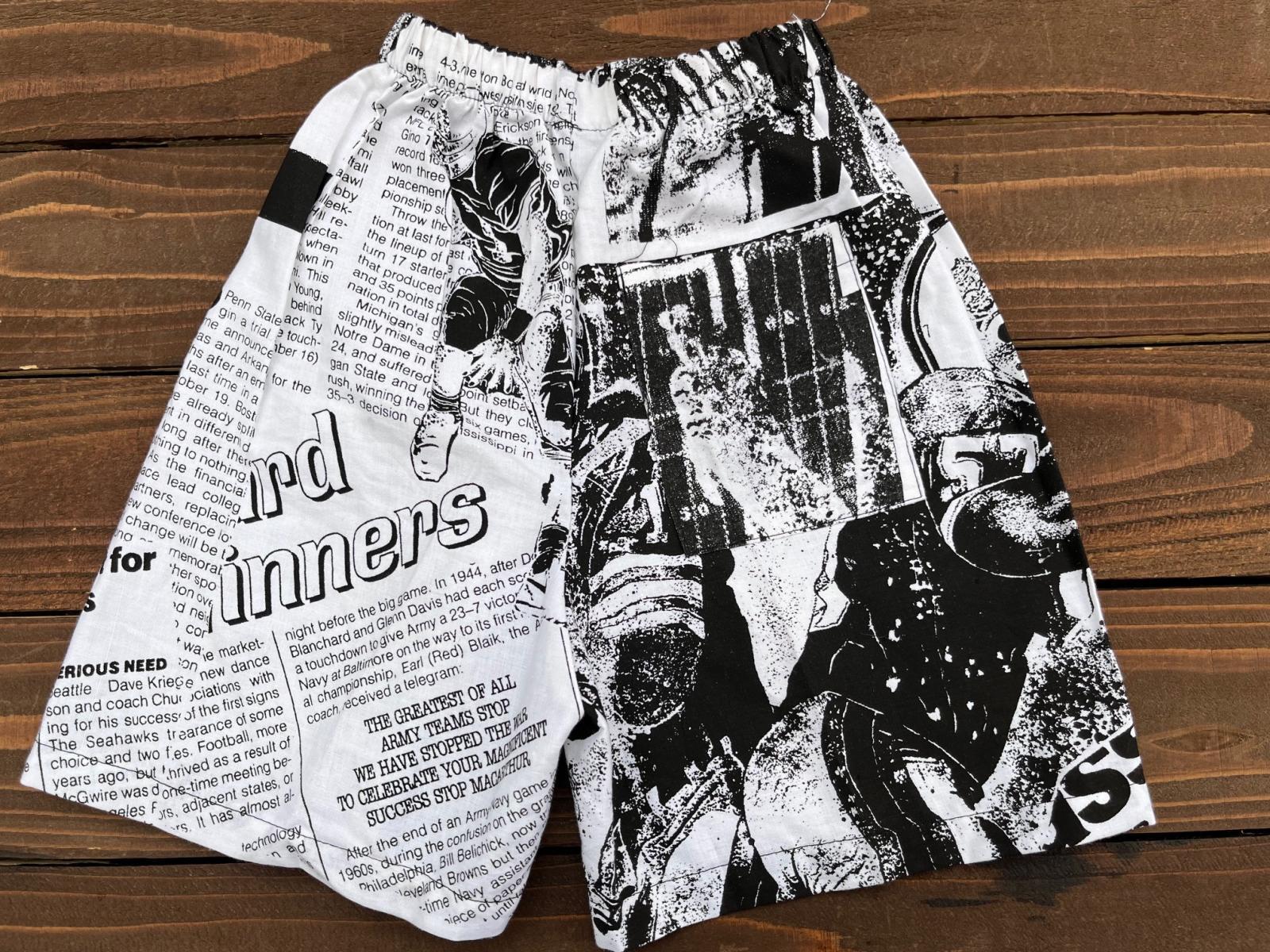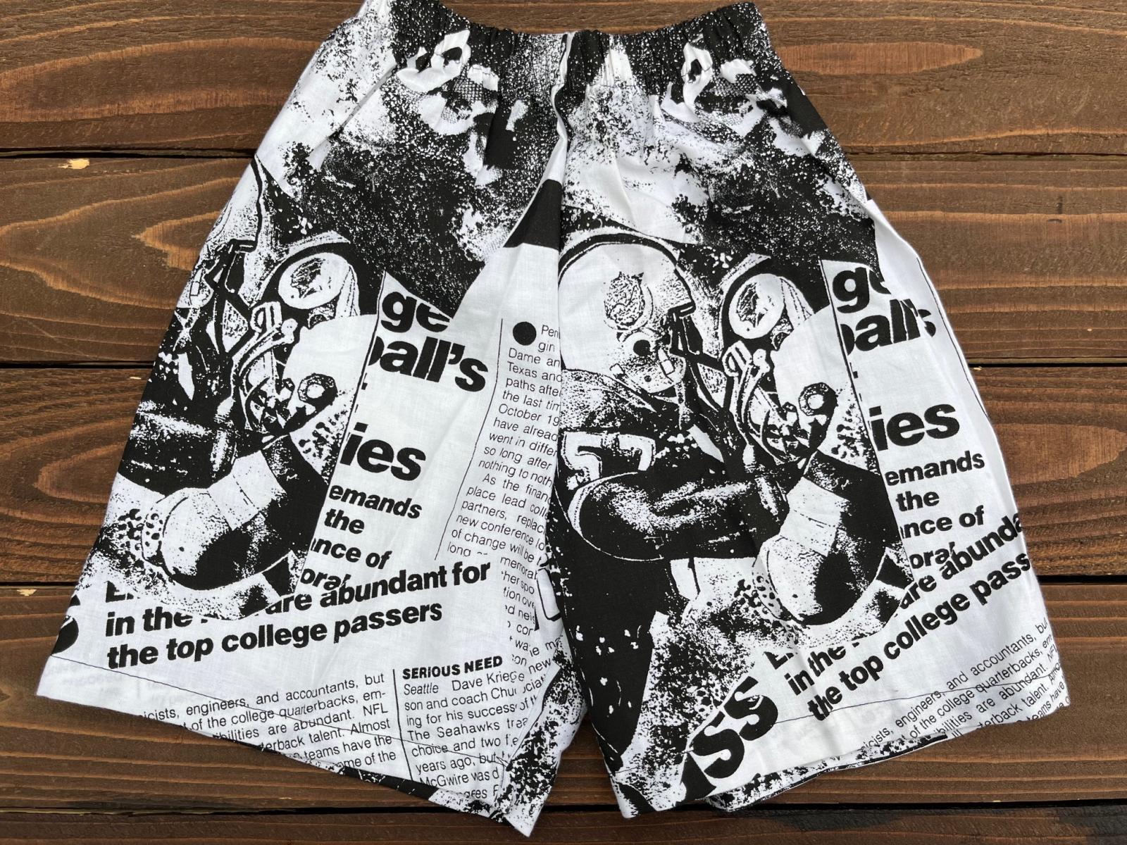 AMERICAN FOOTBALL "MADE IN USA" KIDS ショーツ入荷です。アメフト🏟オールオーバープリント🏈モノクロカラーのGOODデザインの一本です。未洗いのD.STOCKで、とても良い状態です。MEDIUM表記:4〜5歳くらいのお子様に良いサイズです。カワイイですよ♪