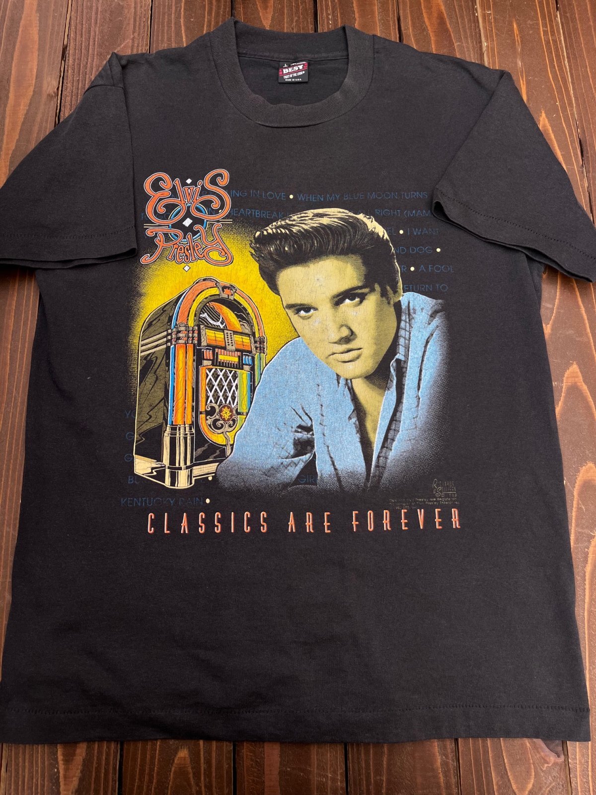 ELVIS PRESLEY 1990年代 Tシャツ入荷です。フルーツUSボディーのフェードブラックに、プレスリー🎸ジュークボックスがプリントされた♪50'Sデザインの一着です。ヘルシンキで見つけました。CLASSICS IS FOREVER🇺🇸🇫🇮🇯🇵EVERYWHERE🕺